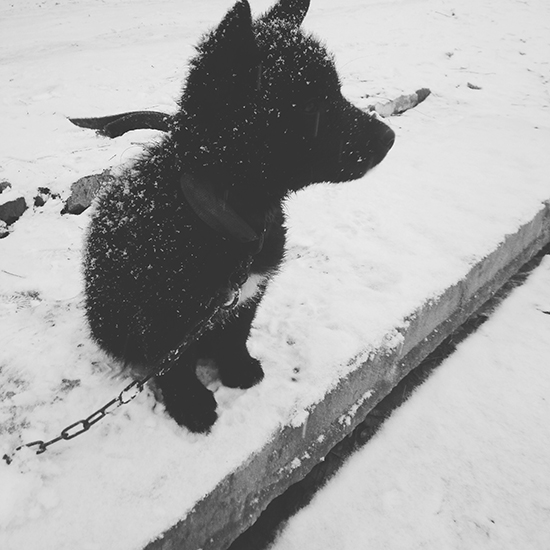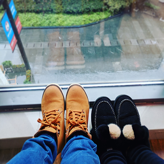 双脚看落雪。